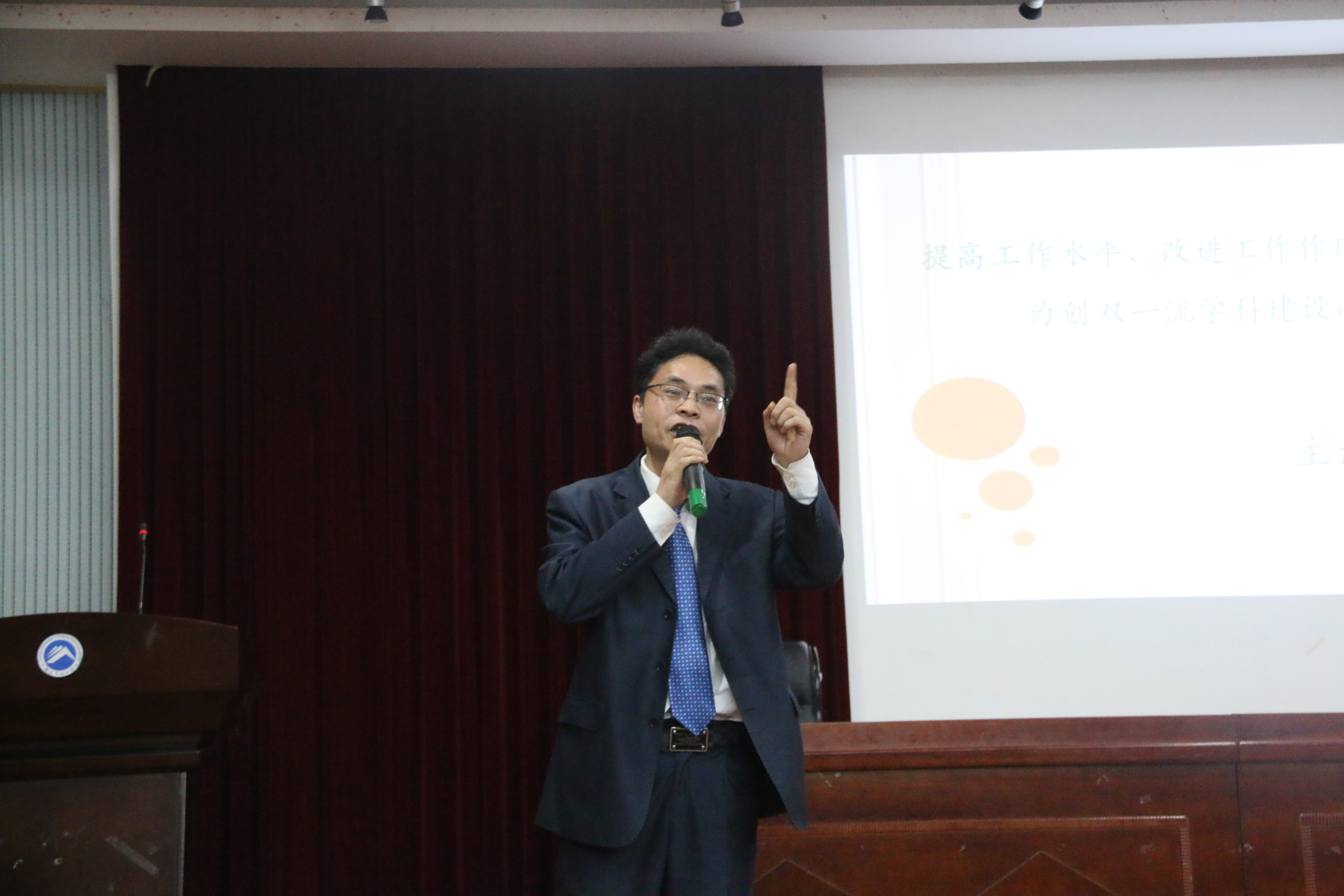 人一生总须要一个领路人,而干培亦如此。在欢快的气氛中,我们迎来了干培的领路人——傅书记。傅书记作为今天的主讲师,他首先强调了我们的目标:提高工作水平,改进工作作风,强化服务意识,为创双一流学科建设而努力奋斗。在发表言论中,书记在了解干培的优秀成果后非常感慨说道:“希望通过今天思想的交流与迸发创造出激情。”有了激情还不够,还要有思想。书记用两个人交换手中苹果后还是只有一个苹果的比喻深刻形象地告诉了我们交换思想的重要性,思想交流能产生更多新的思想,“在这次干培中,我们要有大满贯的想法。”书记的信心成功点燃了在场所有人的激情!