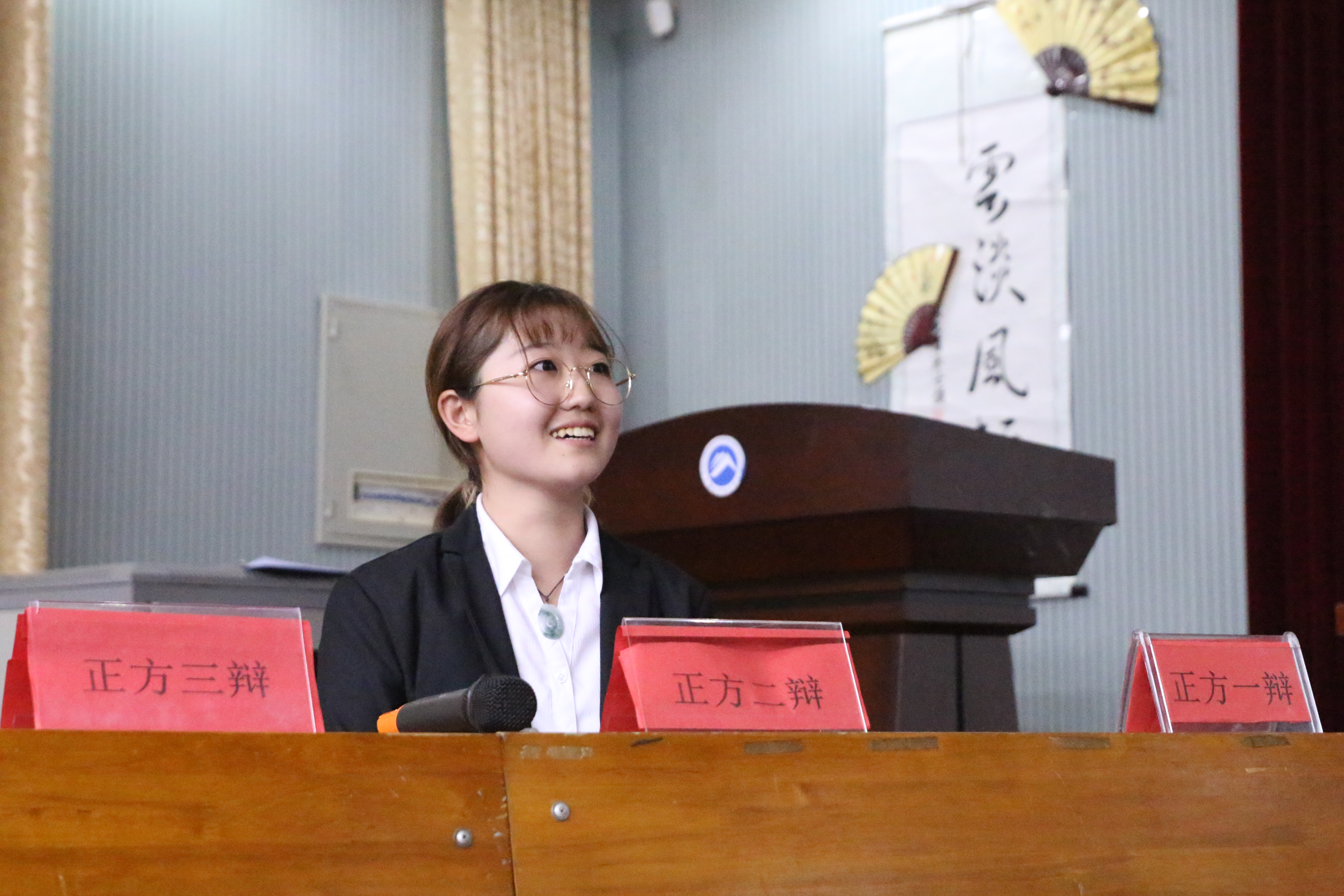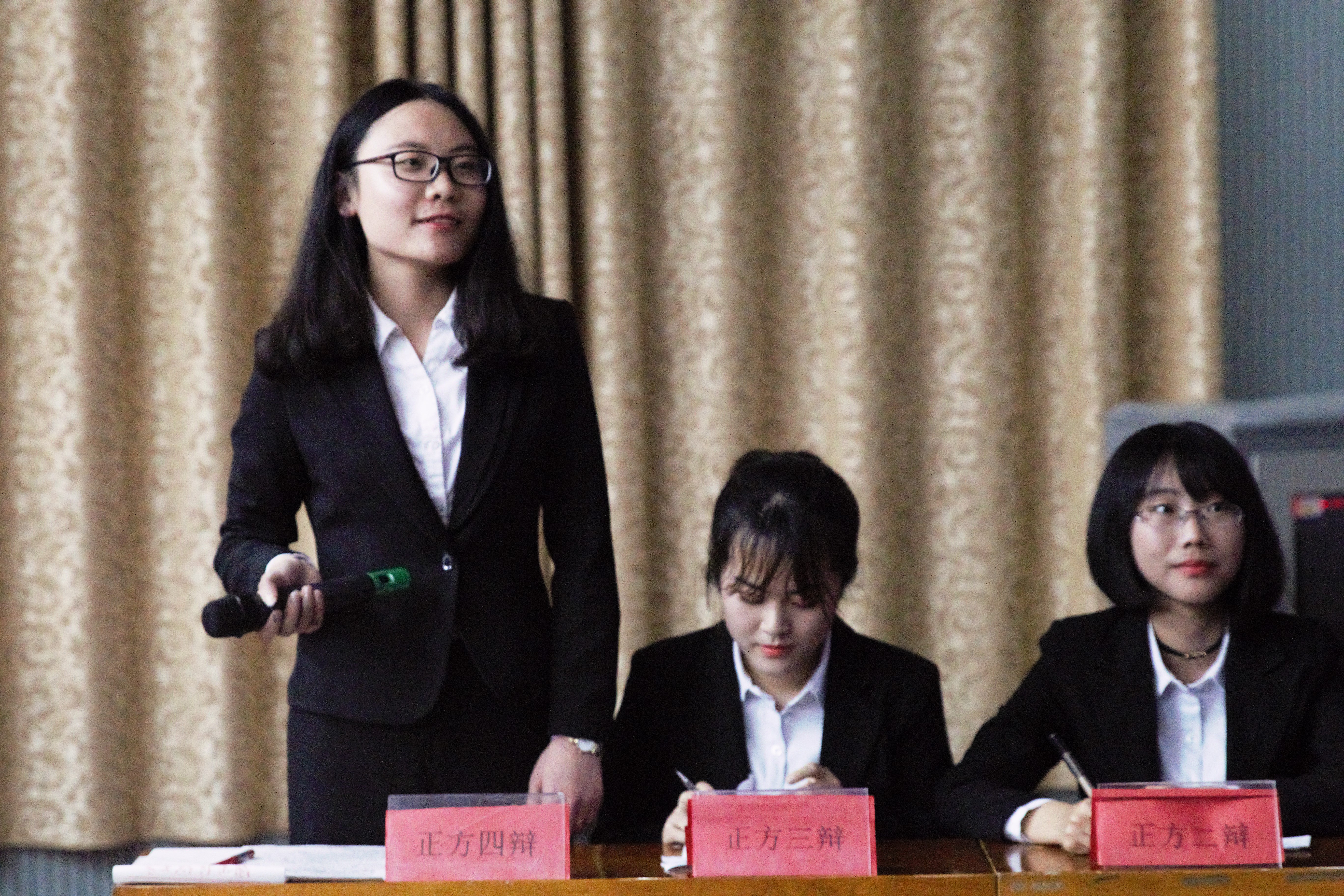 比赛以一支精彩舞曲开始,主持人在简短介绍来宾之后播放了加油视频,各种幽默的画面和话语惹得台下笑声连连。随着观众席上的奋力呐喊,双方战队雄赳赳气昂昂地上场了。正式进入辩论阶段,双方辩手各自陈词讲述自己的观点,侃侃而谈,妙语连珠,场下观众激情澎湃,掌声连连响起。在各位辩手对对方提问、反驳的环节中,相互之间更是进行了激烈的交锋,唇枪舌战,你来我往。观赛学生也热情参与,与辩手的互动更是将现场的气氛活跃起来。攻辩小结中,各辩手抓住对方漏洞,提出自己的看法,展开了激烈的辩论。在最扣人心弦的自由辩论环节,两支队伍乘风破浪,气势如虹,将比赛的气氛推向高潮。辩手们越说越激动,你一言我一语。两队棋逢对手,慷慨激昂,嘉宾、评委和观众也被震撼,将赞赏的目光都汇聚在他们身上。现场的气氛也迅速升温,精彩不停,掌声不断。双方队伍进行了陈词总结之后,开始了观众提问环节,台下的观赛学生也对正、反方的论点提出了自己的看法和不同的见解,台上的辩手们一一进行了回复。最后,经过初赛、复赛和决赛的激烈比拼以及评委们的公正评判,国贸二班的队伍摘得桂冠,由旅管和市营组成的混合队伍也取得了亚军的好成绩。