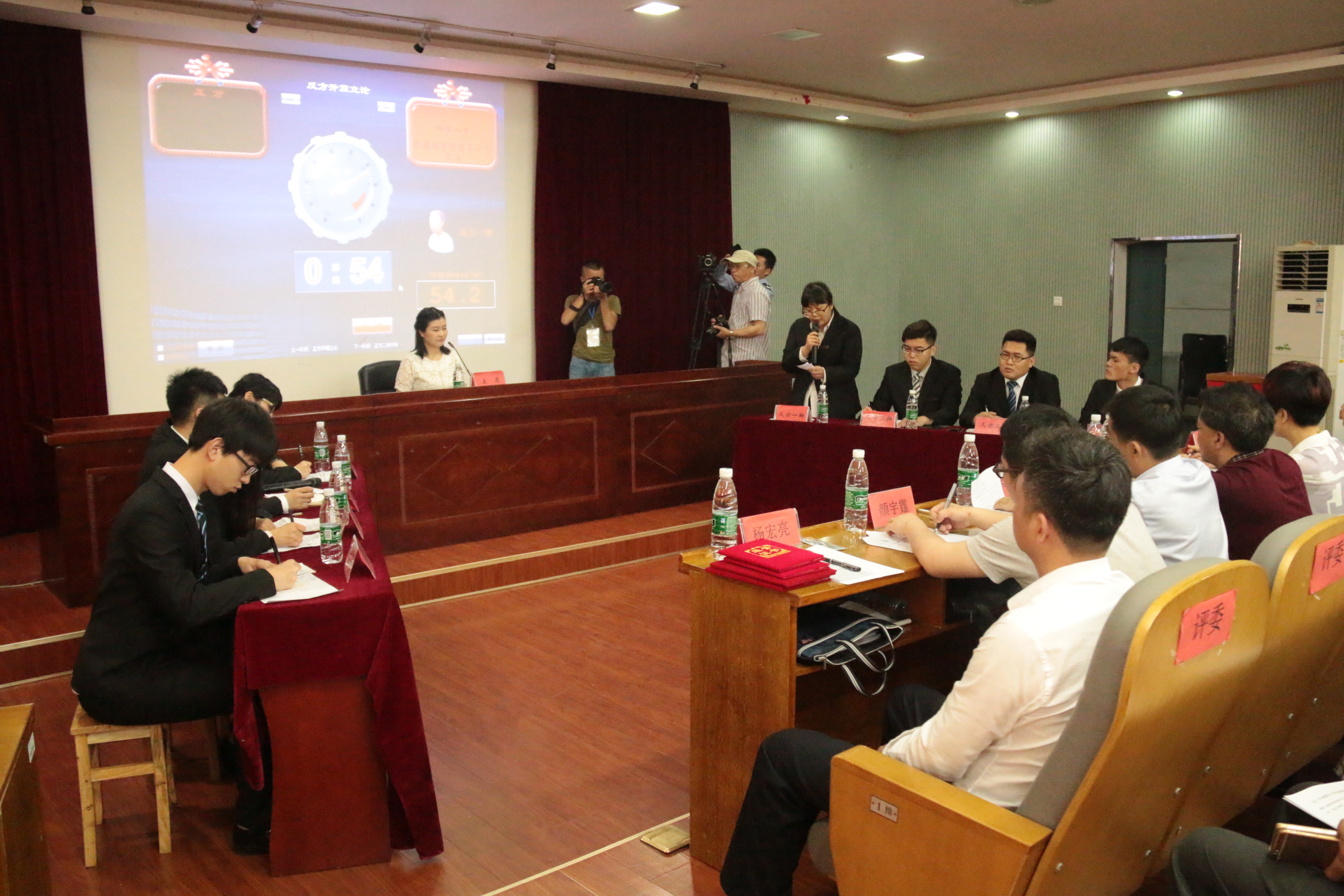 我校代表队与湘潭大学代表队就“影视明星吸毒应当/不应当禁演”的辩题展开了激烈的交锋。