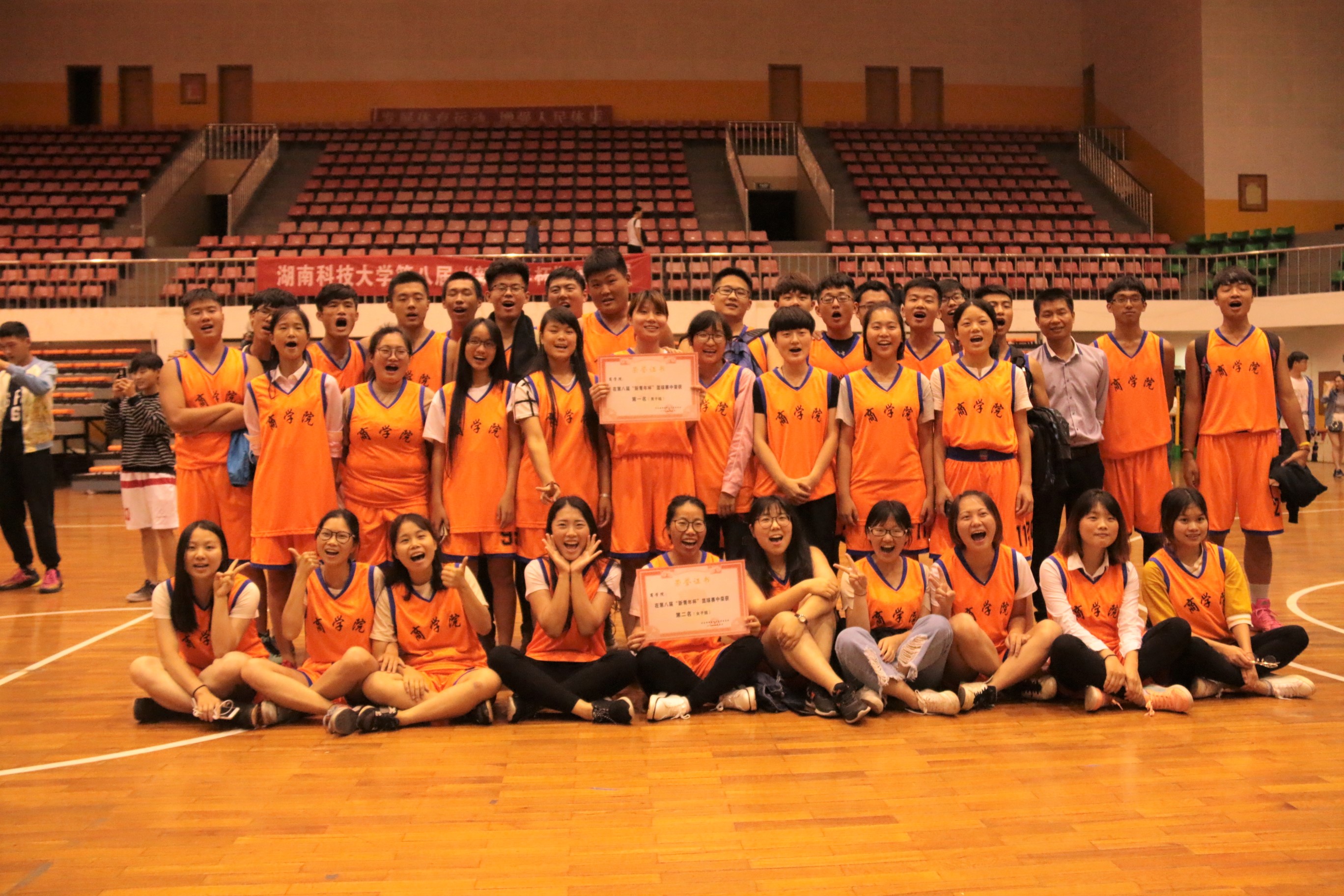 紧接着闭幕式颁奖仪式也在馆内召开,我院荣获湖南科技大学第八届“新青年”杯篮球赛男子组第一名和女子组第二名的辉煌佳绩!其中,我院10号队员蒋宁波荣获湖南科技大学第八届“新青年”杯篮球赛男子组最有价值球员。