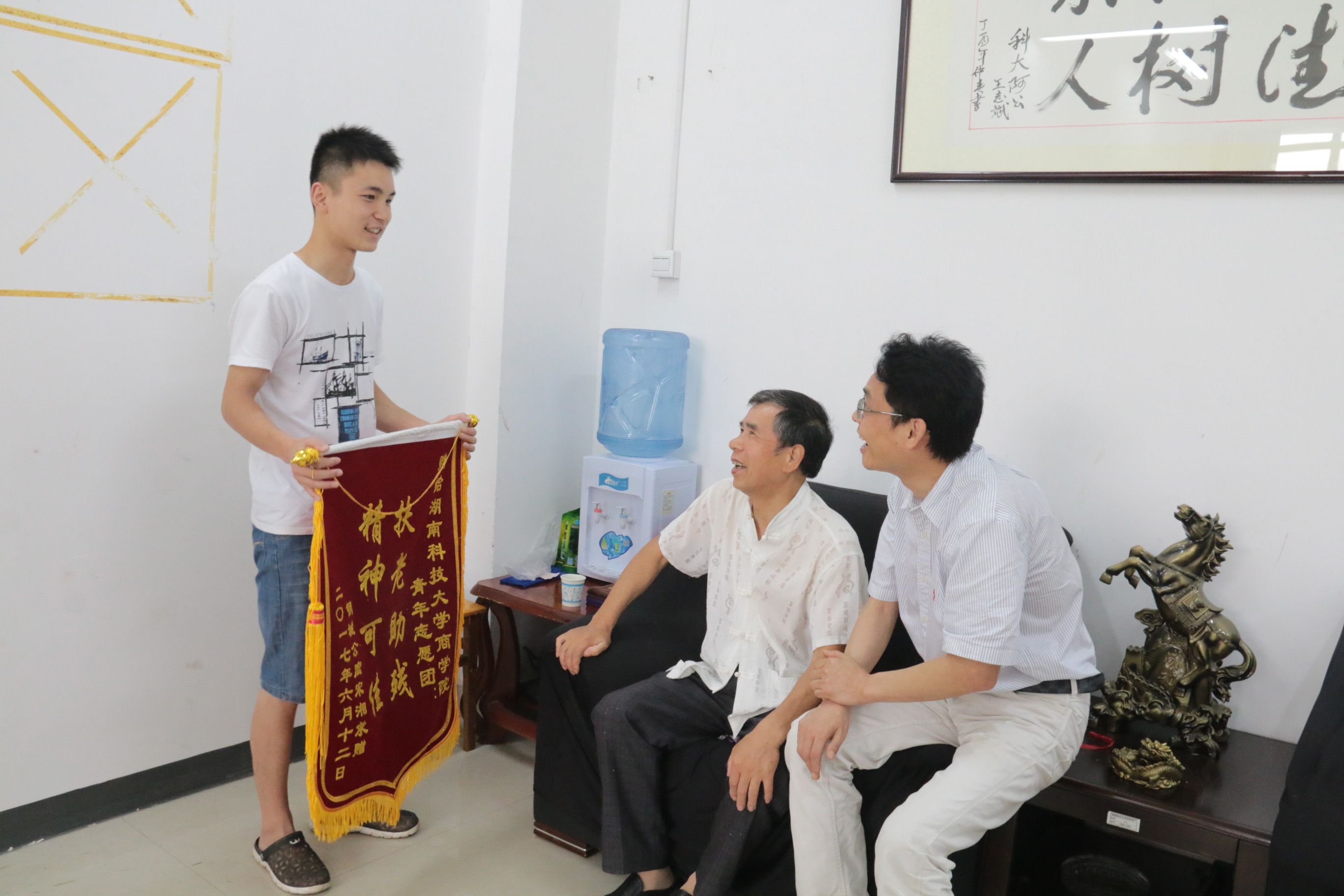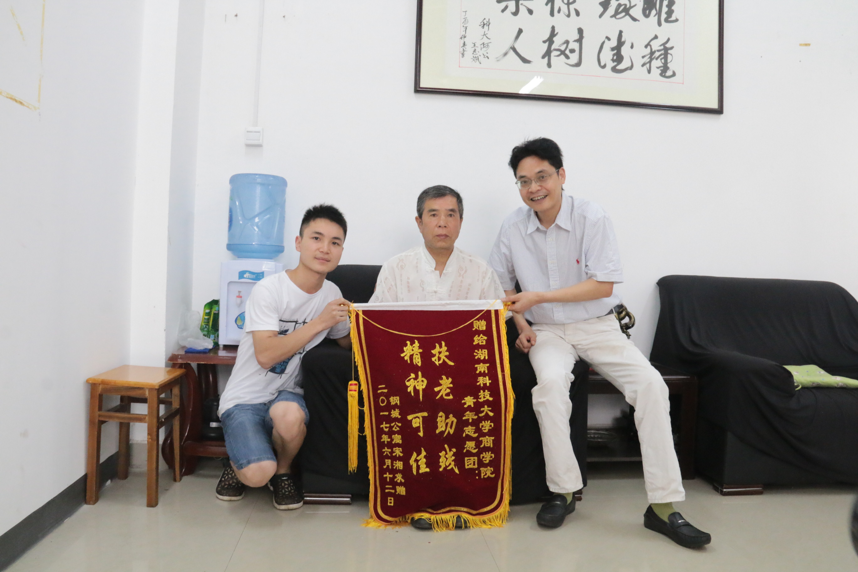 “您68岁了啊,按照现在这样子,98岁都没问题!”商学院党委副书记傅早霞高兴地说道。6月19日10:00,我院青年志愿团泗洲庵社区助老项目的宋湘求老人专程来到三教231书记办公室,并送来印有“扶老助残,精神可佳”字样的锦旗,对商学院青年志愿团的细心照顾表示感谢。