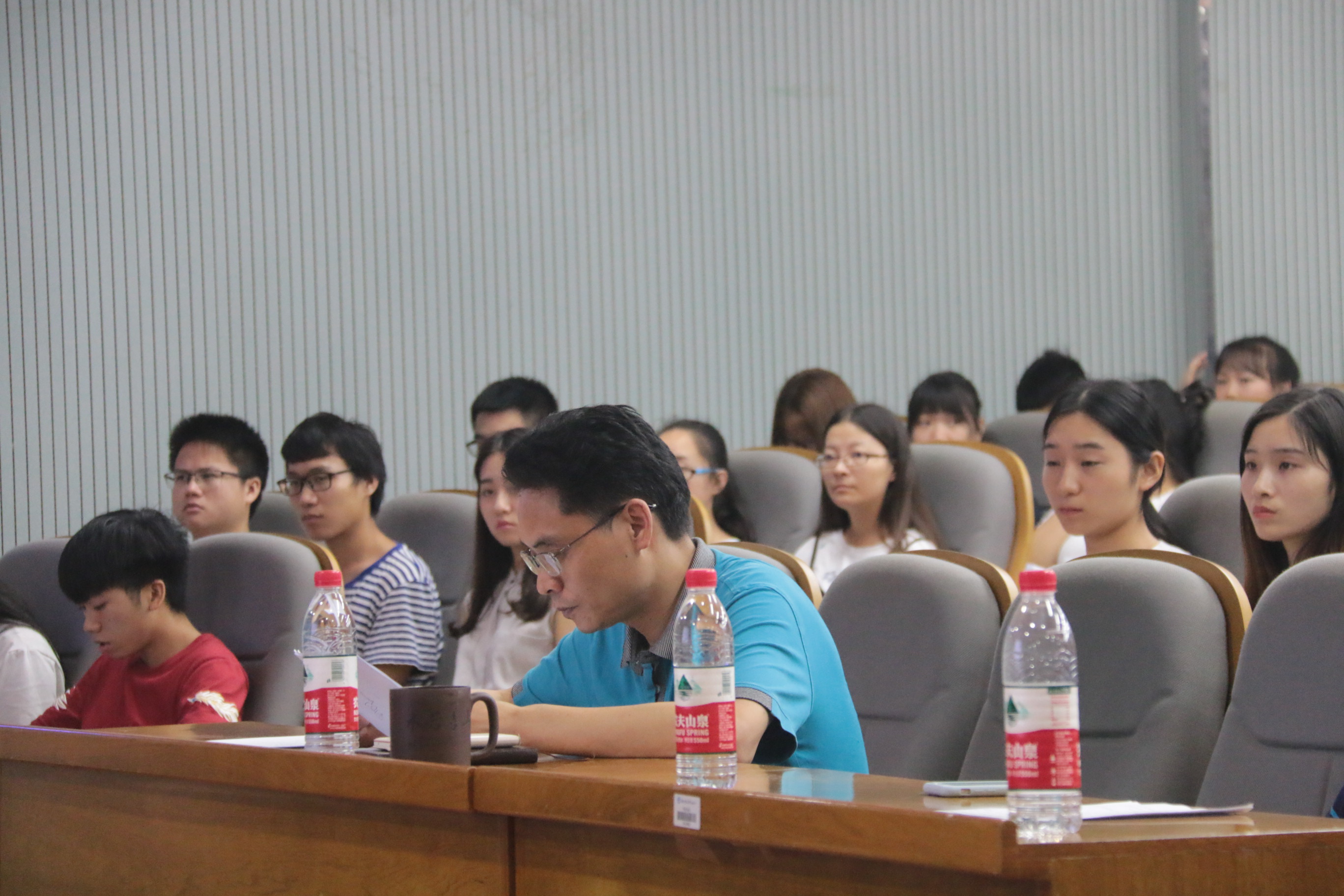7月4日19:30,商学院2017年迎新志愿者动员大会于三教101会议室召开。本次动员大会由商学院青年志愿团主办,商学院党委副书记傅早霞出席,辅导员老师杨美琴与全体迎新志愿者参加。迎新志愿者动员大会的召开标志着商学院迎新接待服务工作正式启动。