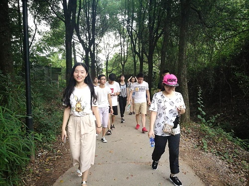 乌石峰随低矮,但茂密的树荫却不多,该日上午气温仍达到了30度并伴随着闷热。一开始,同学们激情膨胀,大步向前迈进,随着温度慢慢升高,同学们开始懈怠起来。“太热了,我快坚持不住了。”身边却响起鼓励的声音:“加油,就快到了!”“寒风飘飘落叶,军队是一朵绿花……”为鼓舞同学们,李铸相大声唱起《军中绿花》,整个队伍的气氛达到高潮,大家纷纷重新振作起来继续前行。历经两个小时后终于登上顶峰,大家汗流浃背,脸上却洋溢着骄傲的笑容。“和先辈们比起来,我们还是远远不够的,我们要继承并发扬吃苦耐劳的精神,艰苦奋斗!”小组领队仲鹏感慨道。