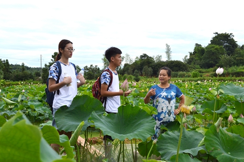 7月9日,为调查了解基地农业经济模式的优点与不足,并结合大学生的专业知识给出建设性意见,湖南科技大学商学院暑期“三下乡”实践活动小组前往乌石镇天龙村黄花菜基地与湘莲基地进行实地调研。