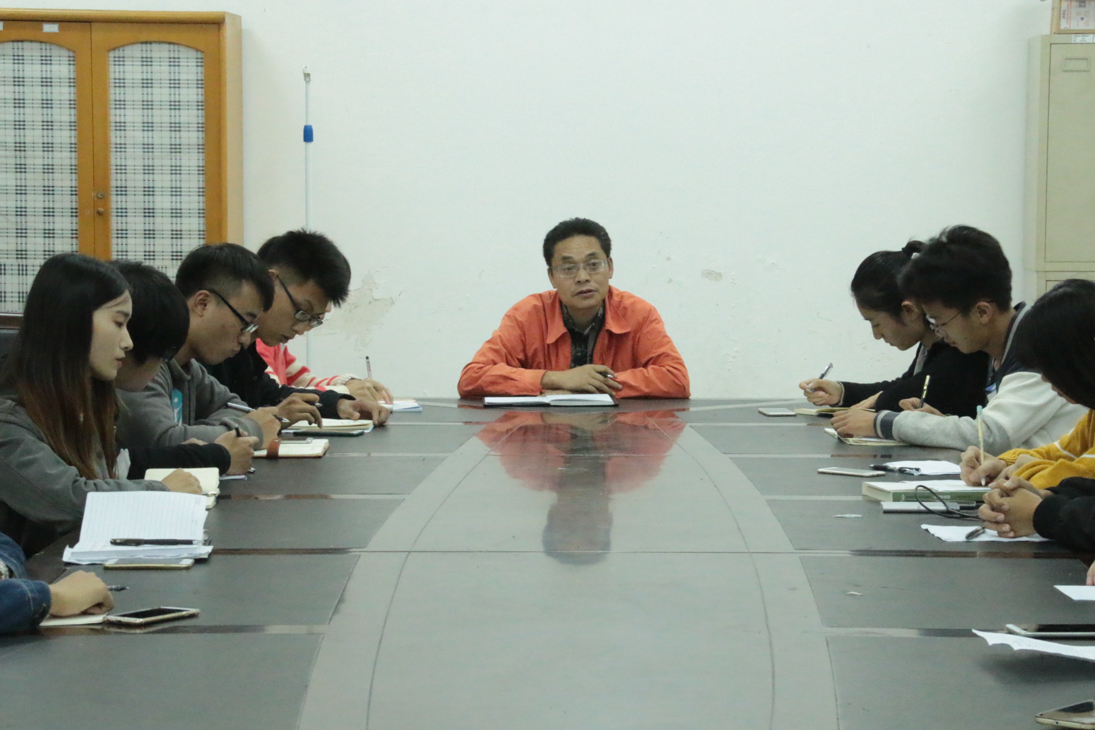 随后,傅书记拿出一份军训简报,以此为镜,着重强调我院宣传工作的重要性。宣传工作在学院评比中的占比较大,他建议多投稿、多宣传,保证一定的得分基数,争取在落后的状态下达成超越,并在内容上彰显商学院的特色。