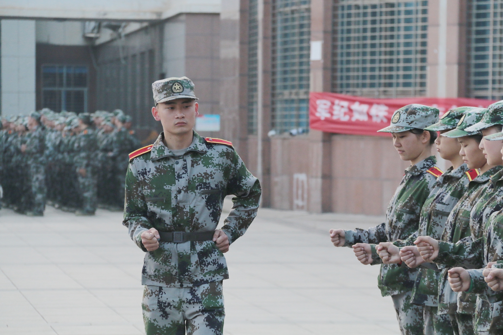 当被问及带训的感受时他感慨道:“这一届新生不怕苦、不怕累,听从指挥,也从不喊苦、从不喊累!”据悉十排共52人,其中48名女生。