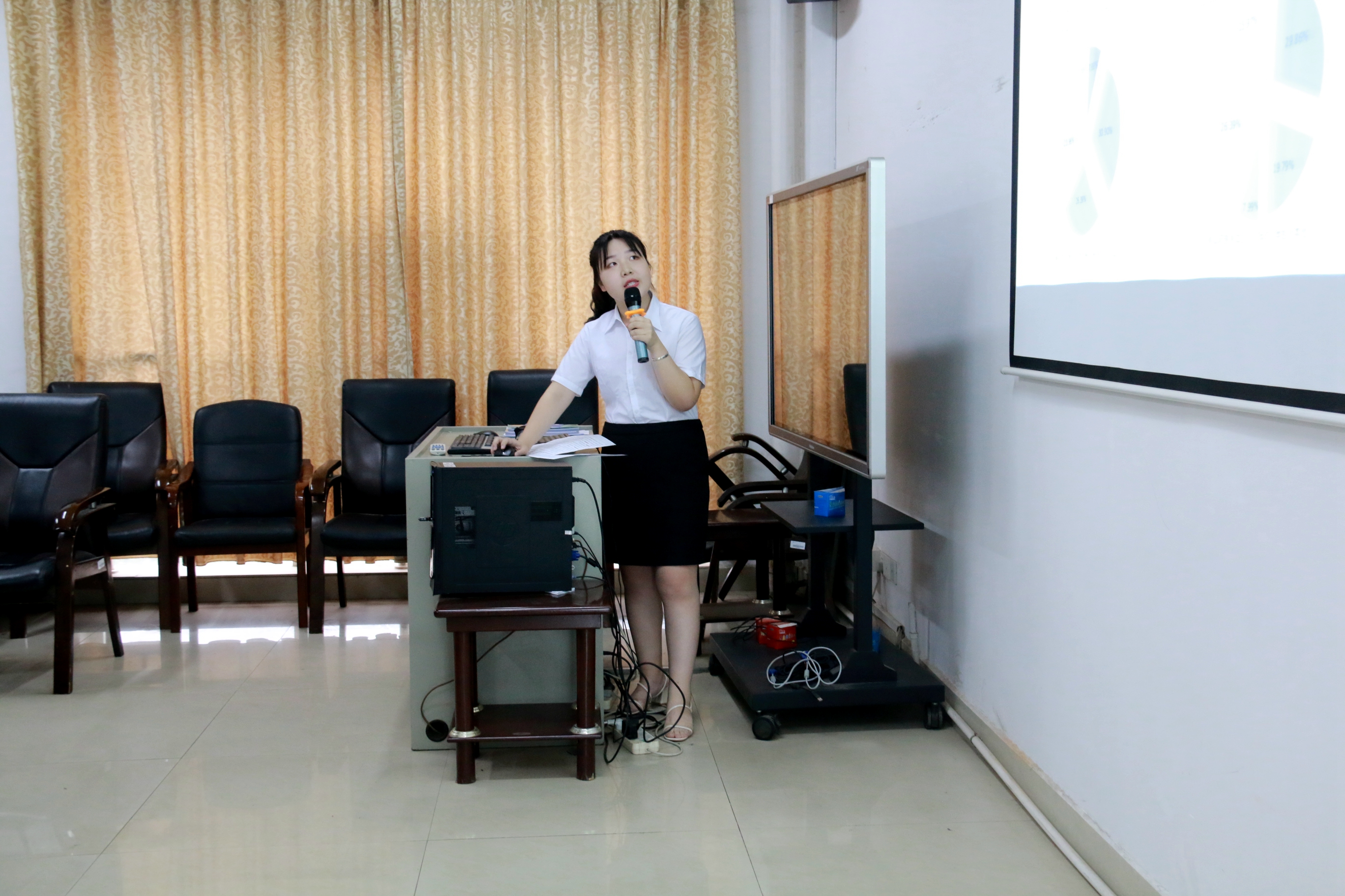 此次答辩会分为答辩负责人汇报和评审提问点评两个环节。在主持人郭欣的主持下,评委与答辩负责人展开了别开生面指正和交流,答辩人结合PPT,从研究选题、研究意义、研究内容、研究数据及方法、研究结论与建议等角度出发进行汇报,汇报结束再由评审老师提问并给出相关建议。