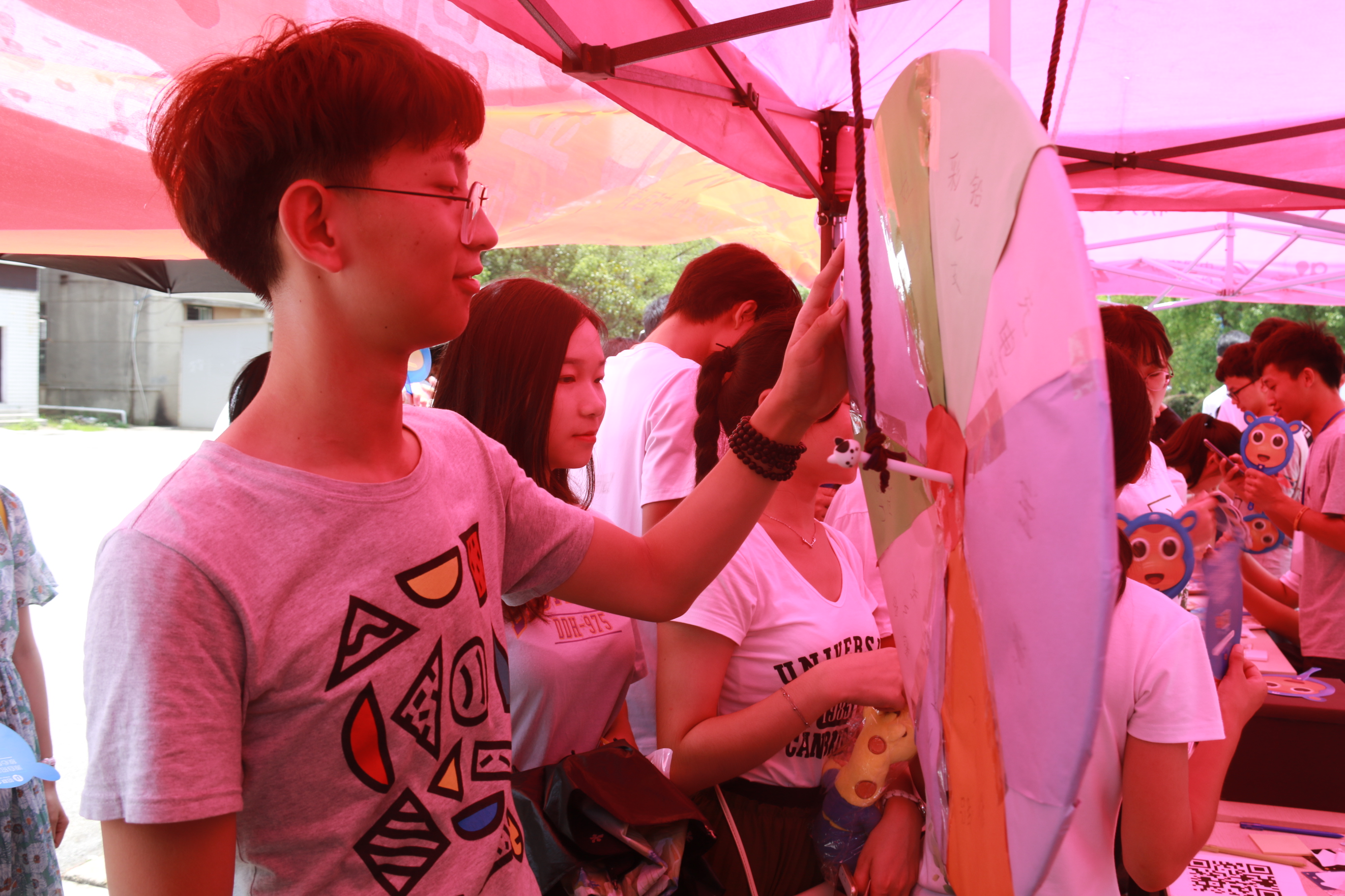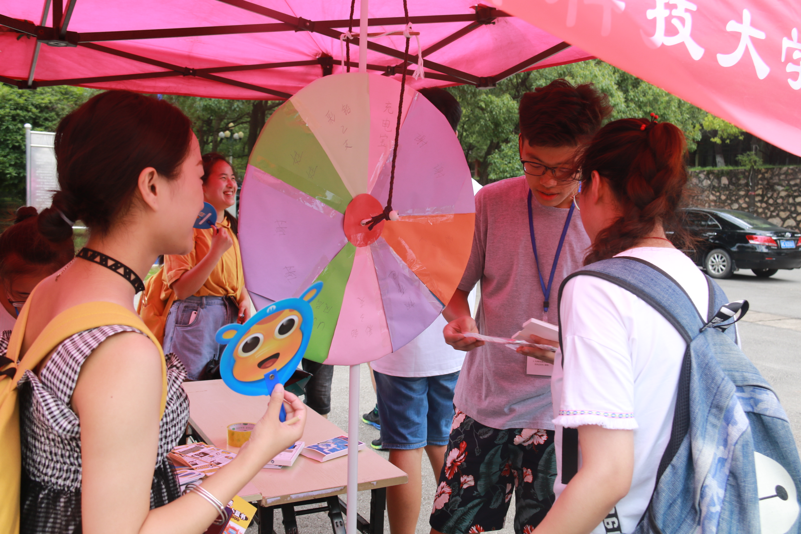 活动伊始,工作人员通过向路过的行人派发金融安全知识手册,同时向他们征集调研问卷,邀请他们参与金融安全知识有奖问答和幸运大转盘游戏环节等,以加强对金融安全知识的宣讲介绍,并积极进行后期开展的金融安全知识竞赛进行现场报名。现场反响十分热烈,广大学子纷纷参与其中,答题赢奖,气氛活跃。