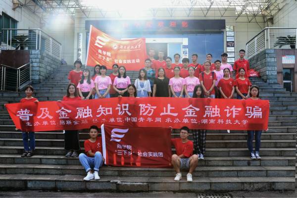 7月14日早上八点整,湖南科技大学商学院于三教前坪开展了以宣讲金融安全知识为主题的暑期“三下乡”社会实践活动启动仪式,参与此次仪式的有商学院党委副书记傅早霞、学工办主任兼团委书记陈攀以及辅导员李搏。
