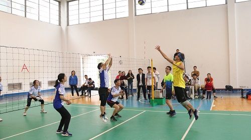 为发扬体育精神,丰富教职工的业务生活,展现教职工良好的精神面貌,2019年11月17日上午10点40分,湖南科技大学商学院与机关一在第二体育馆举行了一场教职工气排球赛。
