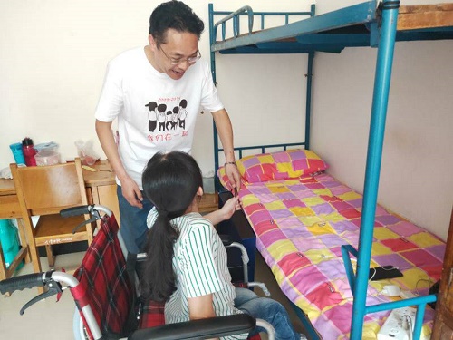 除此之外,傅早霞、陈攀,商学院辅导员崔皓和高峰还特地去看望了身有残疾的新生曾钒淑,给她送去了中秋礼品。傅早霞还询问了曾钒淑的生活情况,向她和她的母亲说明了如何充缴电费等问题。老师们还和她的母亲讨论了商学院日后对她的上课问题及照顾问题的解决办法。曾钒淑和她的母亲也向老师们表示了自己的感激之情,“谢谢书记和老师们对我们的照顾,谢谢你们送来的中秋慰问和祝福,也祝你们中秋快乐。”