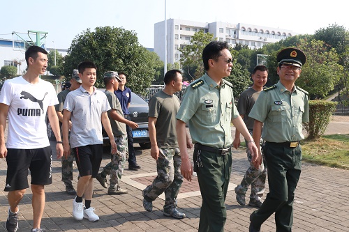 烈日当空,正值中秋佳节团圆之际,2019级新生却还要顶着烈日进行军训训练,但他们并不是孤身奋战。9月13日上午,湖南科技大学武装部部长朱理哲、湖南科技大学商学院党委副书记傅早霞、学工办主任陈攀及2019级辅导员来到军训场上给新生带来中秋慰问。