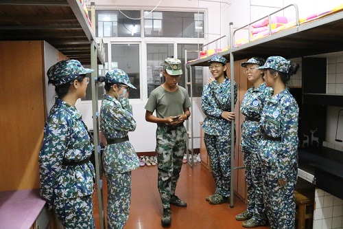 在内务检查开始前,教官们首先对内务要求作出了详细说明,并强调了宿舍内务卫生检查工作的重要性,督促大家要做好各寝室的卫生整理工作。检查过程中,各教官对学生宿舍进行了点评,宿舍卫生整体情况良好,宿舍风气与整洁度都有了很大的提高,然后对个别存在较大问题的寝室提出了整改要求:室内物品摆放整齐、盖被折为豆腐状、地面清扫干净等。此次检查,教官们不仅对各位同学的宿舍内务进行了点评,也对同学们近期的思想状况进行了大致的了解。最后,连长对此次内务检查作出总结:宿舍环境卫生总体保持良好,希望同学们能够继续保持,也希望能够通过此次检查,提高同学们的责任意识和集体观念,加强组织纪律性和队伍凝聚力。同时,连长也对此次检查过程中发现的一些问题提出了具体整改要求,同学们纷纷表示日后会积极整改,维持好宿舍卫生环境。内务检查结束后,获得优秀寝室的陈慧芳同学说道:“一个优秀的寝室离不开室友们的团结协作,我们彼此包容、彼此理解、彼此信任,使得我们的寝室变得整洁温暖,我们将会继续努力!”