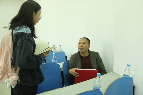 2002级经济学专业优秀毕业生代表魏华接受了采访。当谈到毕业后重回母校的心情时,他表示自己内心感到非常激动,大学的四年是自己人生的一个转折点。四年里,他学会了如何去承担起一份责任,“我们有责任去把学校的精神传承下去,让更多的人了解湖南科技大学,了解商学院。”魏华还回忆起大学期间和同宿舍的同学一起,在原第一教学楼秉烛夜读,备战英语四六级考试,恍如昨日。他还给予了学弟学妹们一些学术上的建议:“我个人认为,学术不应该与社会脱离。我们更应该结合社会现状进行思考,做到学术与社会思考相互检验。专业领域上,希望大家可以潜心钻研,发挥自身优势,做出行业特色。”