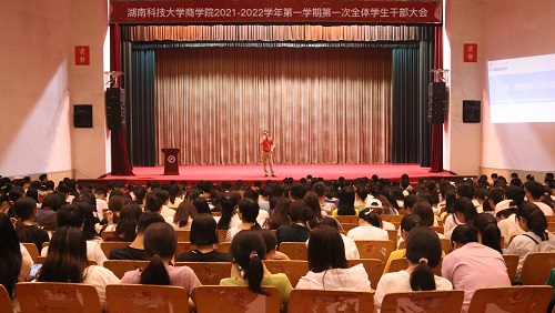 9月10日19:00,湖南科技大学商学院在俱乐部举行了2021年第二学期团委学生会第一次全体干部大会。湖南科技大学商学院党委副书记傅早霞、学工办主任陈攀、团委书记崔皓和各级辅导员老师出席了本次大会。本次会议由商学院团委第一副书记刘阳主持,商学院全体学生干部参加了此次大会。