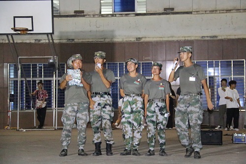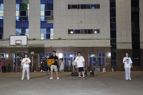 为激发新生军训斗志,展现商院魅力风采,湖南科技大学商学院于9月25日晚上7:30在湖南科技大学一区篮球场举行慰问演出。此次演出由湖南科技大学商学院文娱部主办,文工团承办。商学院学工办主任陈攀、团委书记崔皓以及全体教官、新生一同观看演出。