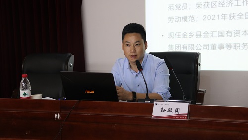 在讲座开始前,潘爱民院长向同学们介绍道,孙敬同为2004级湖南科技大学商学院国际经济与贸易专业的学生,2021年荣获“全国五一劳动奖章”。介绍完毕,同学们鼓掌欢迎孙敬同上台作报告。孙敬同的报告以“你的付出,终有收获”为主题,围绕商学院学生、社交、换位思考和目标导向四个方面展开演讲。首先,他向同学们介绍了自己的任职经历并感叹道,商学院的学生能快速接受知识、适应能力强。同时,他希望商学院团委学生会的各位干部成员继续传承能吃苦、敢拼搏和争第一的优良传统。而后,他以自身的工作经验为例,传达为人守信、办事负责的重要性。此外,他还建议同学们学会换位思考、明确目标导向,与时俱进,跟随优秀,学习优秀,成为优秀!最后,孙敬同引用马克思的名言“生活就像海洋,只有意志坚定的人,才能到达彼岸”与大家共勉。