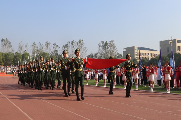 开幕式中,国旗手们护着鲜红的国旗庄严前进,宣传牌、彩旗队、鲜花队有序地跟随在后,学校党政领导方队、农业银行队、离退休队、保安物业队、裁判员、教职工代表队以及各学院代表方阵队依次有序入场。随后,本次赛事的运动员们迈着铿锵的步伐走入会场,他们精神饱满、斗志昂扬,凝聚着青春力量,展示出科大学子的青年风采。