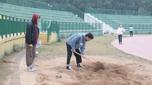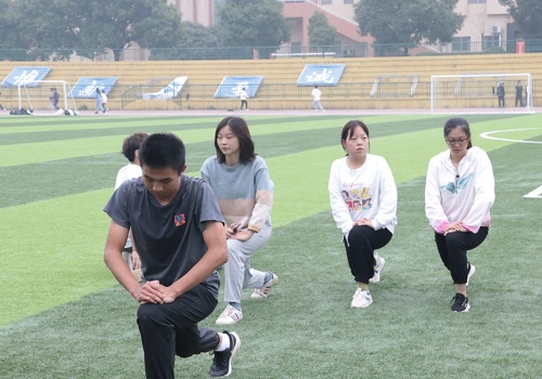 田径场上,运动员们紧张有序地进行着一项项训练。跳远运动员仔细测算着起跑到起跳的步数;长跑运动员进行着耐力车轮跑;中短跑运动员不断练习着起步与冲刺……天灰蒙蒙亮时,运动员就开始了每天辛苦到汗流浃背的训练,只为在秋运会上给商学院争光添彩。商学院团委学生会体育部的部员们认真地辅助监督运动员们完成各项训练任务,有秋运会经验的部员尽心尽力地组织运动员们进行科学有效地训练。