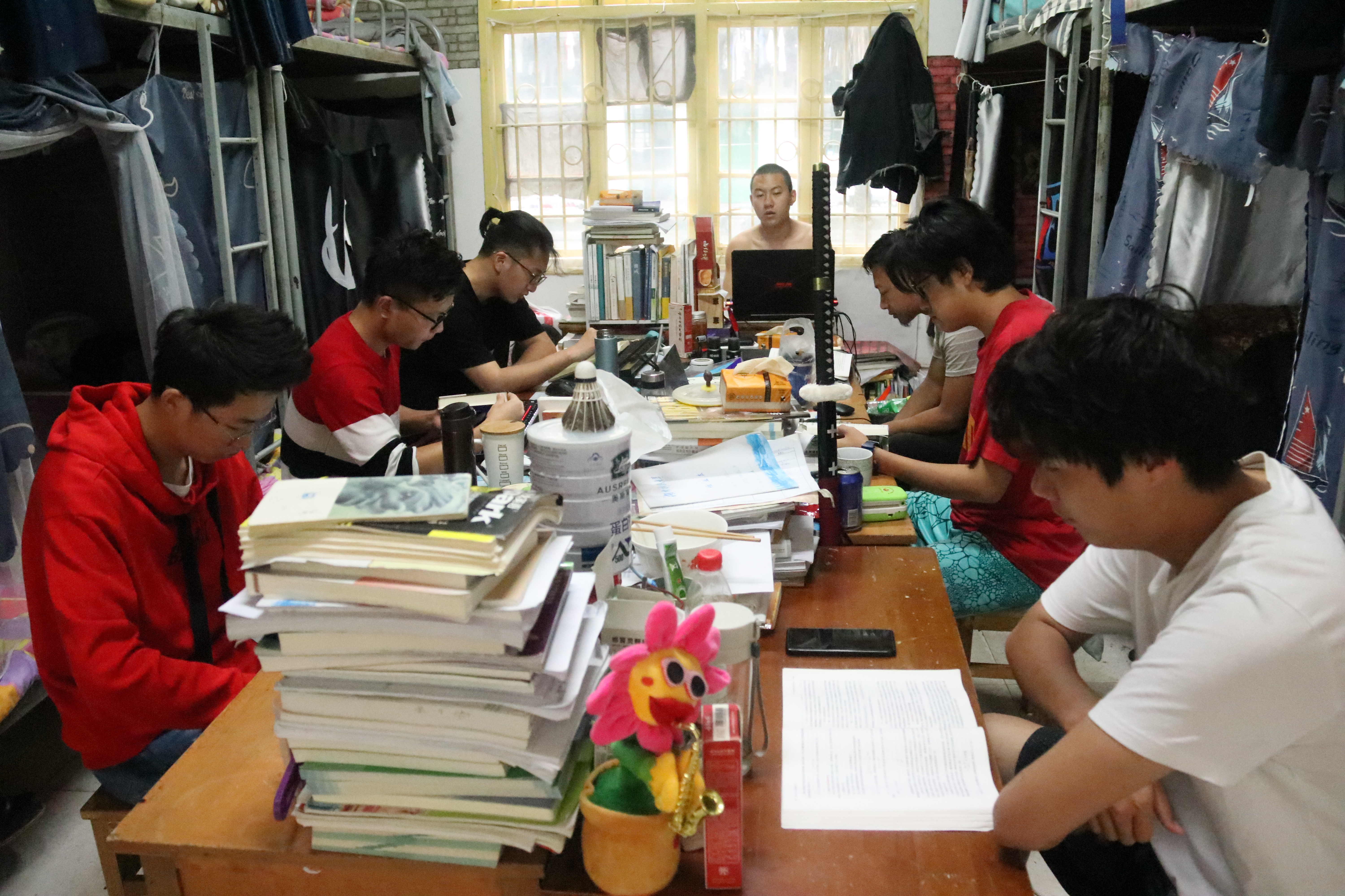 2019年5月17日7:00,二区九栋的男同学们早早洗漱完毕,打扫寝室卫生,捧起书本等待着湖南科技大学商学院发展党员的下寝。据悉,商学院男生普宿学风建设活动已持续一个月。