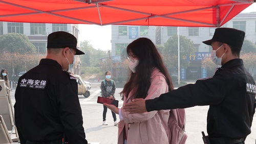 演练随即开始,辅导员蔡美玲得知2021级会计学专业二班在第一教学楼101教室上课时,班上有一名学生的健康码由绿码变成了红码,于是立即有人报告了商学院党委副书记傅早霞以及校医院的李双老师。防控人员到达现场后,为同学们发放口罩,测量体温并带领红码同学进行隔离观察。在场景二中,负责人行通道的李毅在南校门经查验发现某同学体温异常,便立即带领该同学到临时医学观察区,组织值班保安对南校门口实行**毒,并进行上报。李双老师立即安排专车运送该同学至湘潭市中心医院发热门诊就诊,并通知同宿舍的同学在寝室隔离。