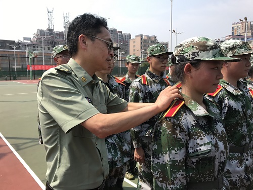 今天主要进行了军容风纪检查和队列练习。“稍息,立正,双手紧贴裤缝,抬头挺胸!”教官一声令下,检查开始,新生在其指定位置列队,以饱满的热情、飒爽的英姿等待教官的检查。教官对不合格的同学施以小惩,并勒令其马上改正。期间,商学院党委副书记傅早霞前来视察,他鼓励同学们要坚持,“军训是习惯的养成,希望同学们在军训中养成良好的生活习惯。”他还如长辈般亲切地为新生抚平了衣领,亲自示范和讲解了腰带的调节方法。