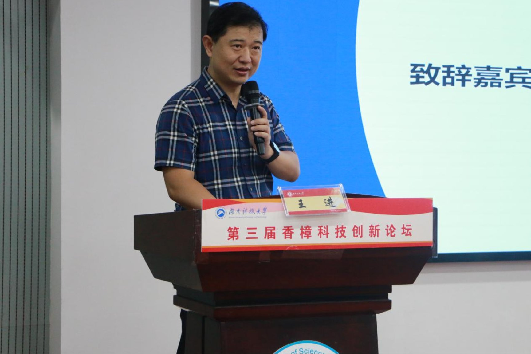 该论坛开幕式由湖南科技大学社科处处长贺胜兵主持,湖南科技大学副校长王进致辞。王进对各位领导、来宾表示诚挚的欢迎,以“红色基因”、“文化基因”、“科技基因”三个关键“基因”对我校进行全面介绍。