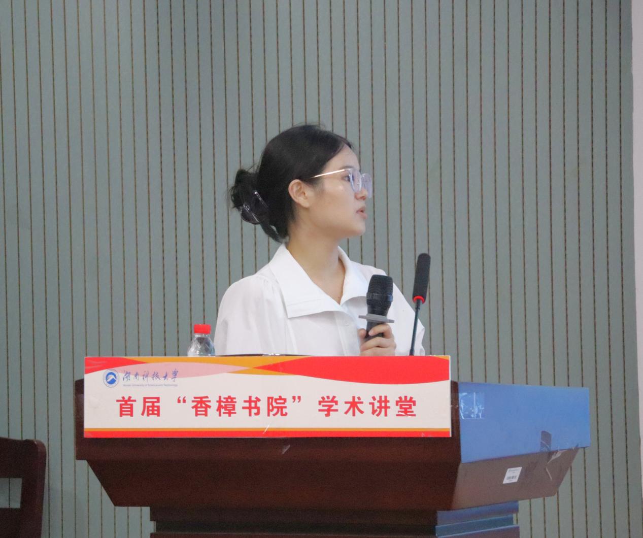 报告结束后设有学术问答环节,在场观众踊跃发言,提出疑问与困惑。学术交流环节,湖南科技大学商学院李仁宇、骆晶汇报《嵌入FTA网络与企业供应链安全》论文;王思曼则分享关于数据要素市场发展、要素配置与实数融合的学术研究。特邀嘉宾认真聆听,专业指导,有力增进本校师生对相关学术内容的学习理解。